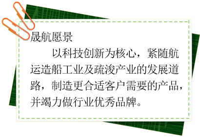 東臺市晟航機械制造有限公司是一家以疏浚船舶配套設備及機械產業設計制造為主的專業化、多層次拓展公司。  公司秉持著誠信為本、客戶為尊、創新為要、和諧共贏的理念及科技創新、以人為本的宗旨,得到了上海交大設計院、河海大學等相關專業領域的專家指導和幫助。公司注重人才的培養和科技現代化的運用,我們從產品設計開始,除了傳統的設計計算外還運用了先進的計算機軟件進行了建模仿真計算及應力分析,從設計開始就保證每個部件合理的、經濟的、適用的。我們擁有科學合理的管理方法和專業的人才,從產品設計到成品出廠整個過程都有科學的質量控制流程和方法。